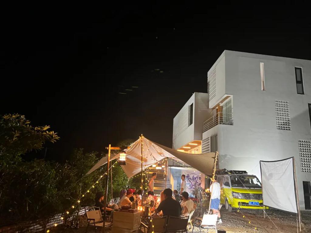 今年 5 月,裴琳开始定期在社交媒体上分享自己的自建房小院。白天,这里像是一幅风景画,蓝天、白墙、绿草、秋千、鲜花、石子路,一切与自然相关的元素都汇集在裴琳的院子里。夜晚,裴琳和朋友们又聚在星空下,在巨大的幕布旁,伴随着幕布上播放的 BGM 一起跳舞。