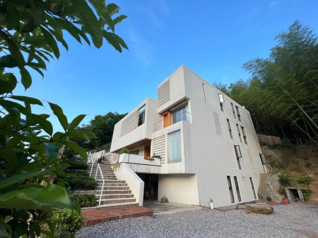 在他们的村子里,坐落着大批欧式或美式风的自建房。这是陈海滨爸妈那一代更倾向的自建房风格。但陈海滨可不喜欢这种,在回村自建房前,陈海滨在泰国的富人区住过一段日子,周围有很多风格各异的建筑,其中他印象最深刻的是一栋纯白色极简风的别墅,他想自己也要打造出一栋这样的房子。2018 年,陈海滨的妈妈和妹妹一并来到泰国,帮着陈海滨打理贸易公司。那时的陈海滨特意给她们租了一个当地的院子,目的是为了让她们感受一下,房子的 " 其他可能性 "。
