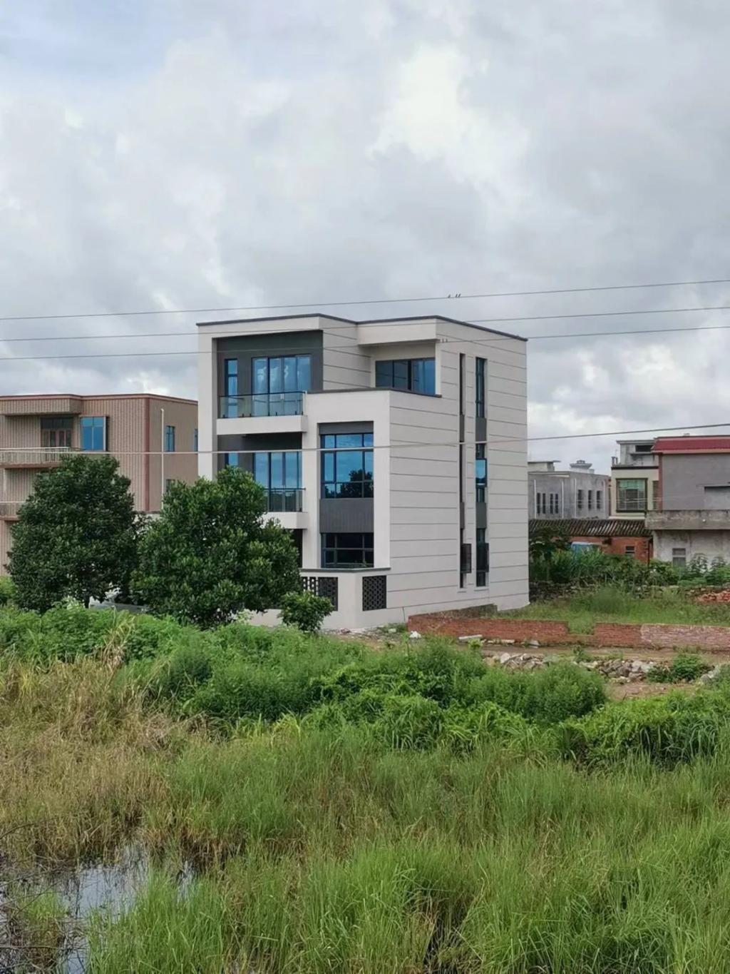历时一年整,陈海滨 " 从零到一 " 打造了一栋纯白极简风的自建房,实现了村里的独树一帜。