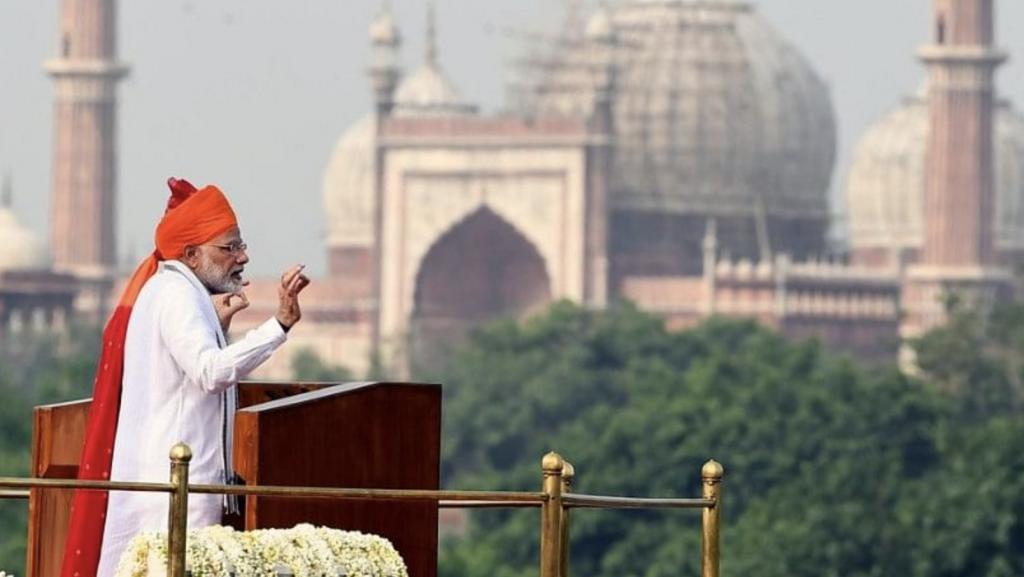印度总理莫迪每年都会身穿印度传统服饰,在红堡发表独立日演讲。(图源:社交媒体)