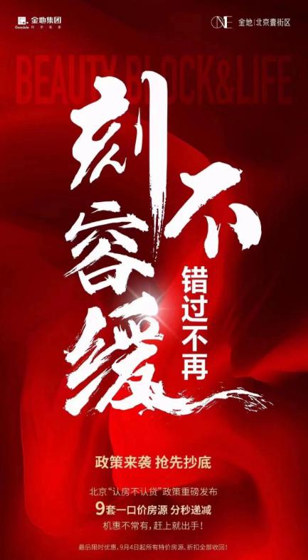 9 月 1 日晚,北京于一线城市中最后官宣实施 " 认房不认贷 " 政策后,很快,位于通州区的招商璀璨公元就发布上述海报,宣布明日(9 月 2 日)起上调价格。