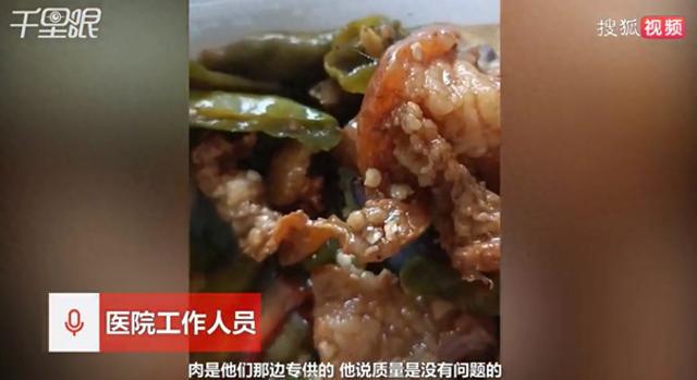 对此,医院工作人员称,食堂内的肉类均由承包公司专供,货源的质量可以保证,肥肉部分在制作中未达到一定焦度可能会有此现象,如遇此类情况可以及时向食堂或院方反馈。