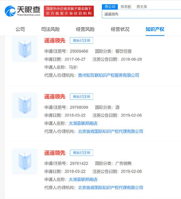 天眼查 App 显示,近日,深圳两公司申请注册 " 遥遥领先 " 商标,国际分类为科学仪器和教育娱乐,当前商标状态均为申请中。在此之前,已有多家公司和自然人申请注册 " 遥遥领先 " 商标,国际分类包括通讯服务、广告销售等,其中部分商标已完成注册。
