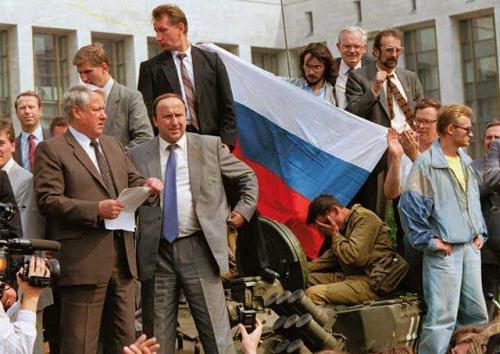 1991年12月25日晚上19时20分,戈尔巴乔夫把核按钮移交给叶利钦,19时38分,在克里姆林宫飘扬的镰刀和铁锤的苏联国旗降下,俄罗斯白蓝红国旗升上,至此苏联完成使命,俄罗斯独立建国开始。