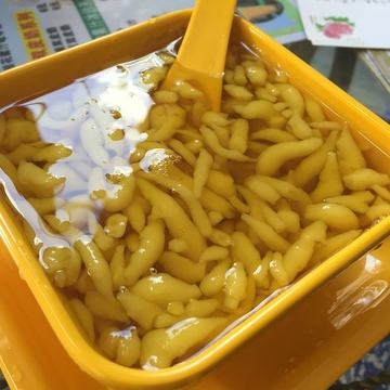 槐花粉是北海都能见到的一种特色美食,是许多北海人童年的记忆。槐花粉由槐花和大米一起制作而成,两头尖中间肥,看起来黄黄的。如今在北海街头的甜品店,或者小贩拉的小推车,还能看到槐花粉的身影。在酷暑难耐的夏日,买上一碗槐花粉,加上一勺冰镇清甜的红糖水,凉凉的甜味和清香让人瞬间心旷神怡。