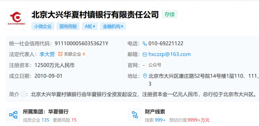 据企查查,北京大兴华夏村镇银行是由华夏银行发起设立的村镇银行。根据华夏银行 2022 年年度报告,华夏银行持有北京大兴华夏村镇银行 80% 股份。