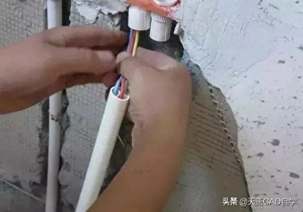 电线穿管施工过程:先按施工图纸把保护管敷设好,再把电线电缆穿入pvc管或冷弯管到达用电器,走线时注意横平竖直。