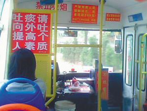 最近,中国江西网报道了南昌176路公交张贴“讲卫生防流感请把痰吐窗外”的雷人标语。当日,南昌市公交运输集团回应,目前张贴的标语已经清除,系刚上岗一月不到的驾驶员私自张贴,未汇报车队。