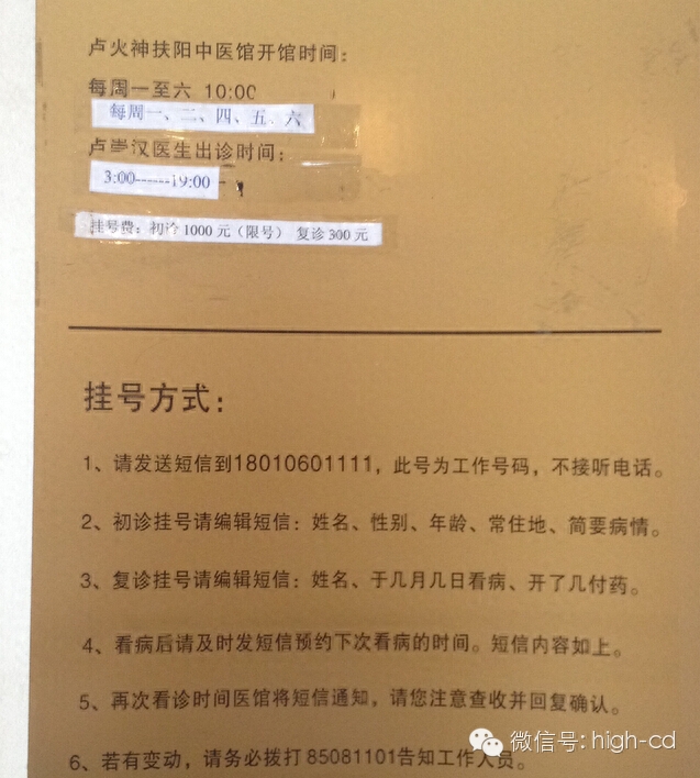 初次挂号费高达一千元的卢崇汉教授基本可以说是业界最高收费了,不过这一千块的挂号费也是其业界地位的象征。