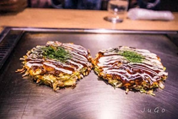 分为关西风御好烧和广岛风御好烧两种,是日本关西的庶民美食。把高丽菜、猪肉片(或其它肉类)、小虾(或其它海味)、鸡蛋及其它配料的面糊放在热铁板上烧烤,吃前浇上特制的酱汁、美乃滋、柴鱼片和青葱海苔粉,口感上层次丰富。这种料理的特色在于食材可自由搭配,随意制作出你喜欢的食物。