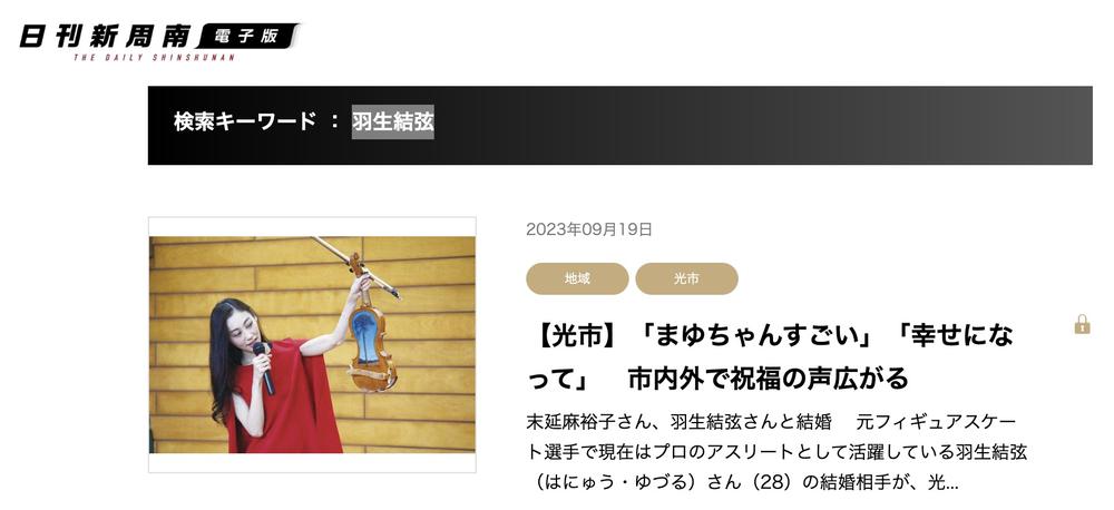 但山口县地方小报《日刊新周南》却没有这种顾虑,根据《周刊女性》的报道,他们确认 " 羽生妻 " 就是当地有名的一位名门小姐。
