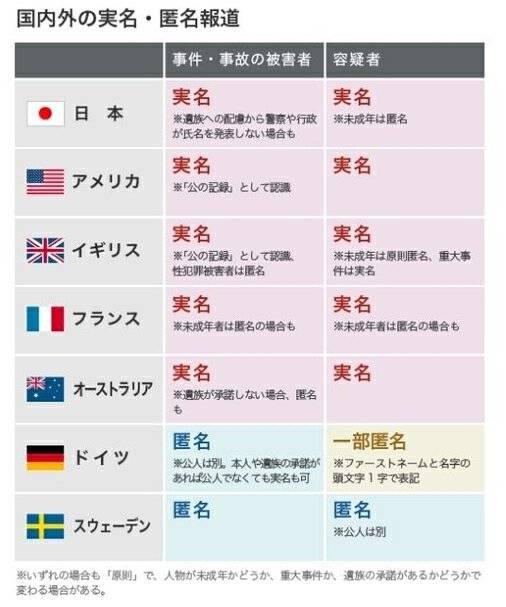 日本是 " 实名报道制 " 国家,也就是说,在新闻报道中不隐瞒当事人的身份信息,尽可能给观众提供资讯。