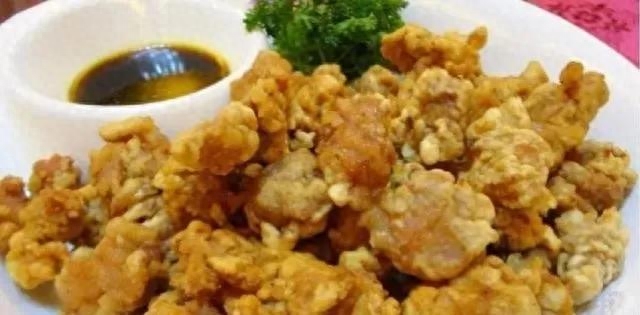这个菜的肉主要是以油炸为主,所以吃起来特别有口感,炸完之后蘸上一些酱油或者是醋,都会特别好吃,外面酥脆但是里面的肉又很嫩。