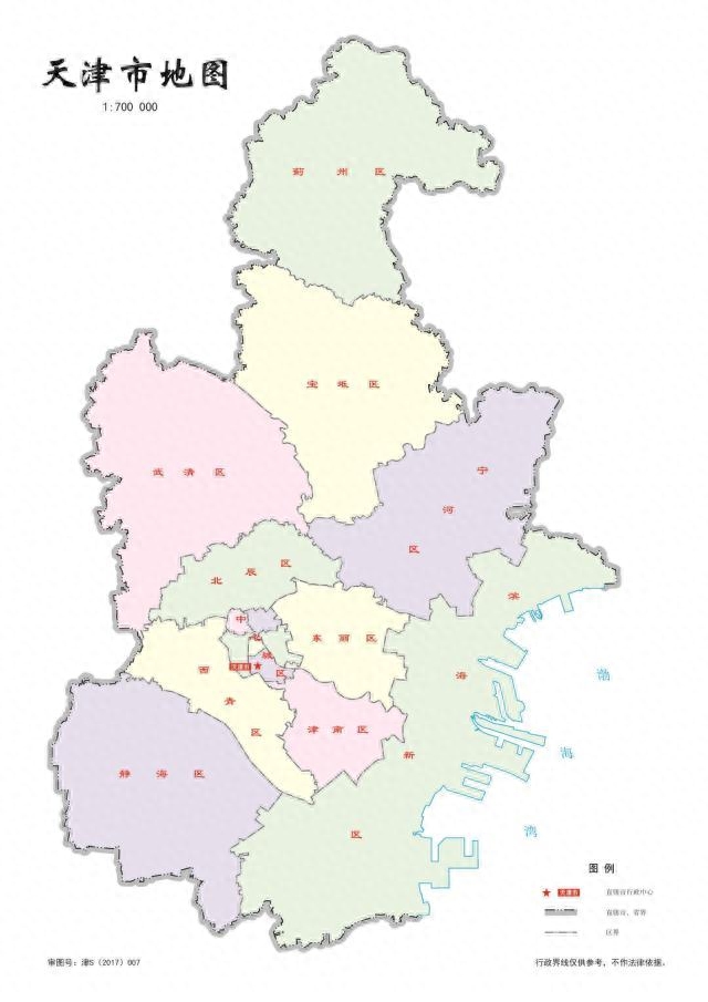 天津市则是中国的四大直辖市之一,分成了16个市辖区,其中6个中心城市、4个近郊区、5个远郊区、1个滨海新区。