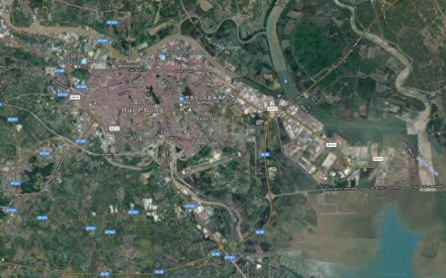 下面就是越南北方的地图,绿色的部分就是红河三角洲,黑框标出的沿海城市就是海防市。