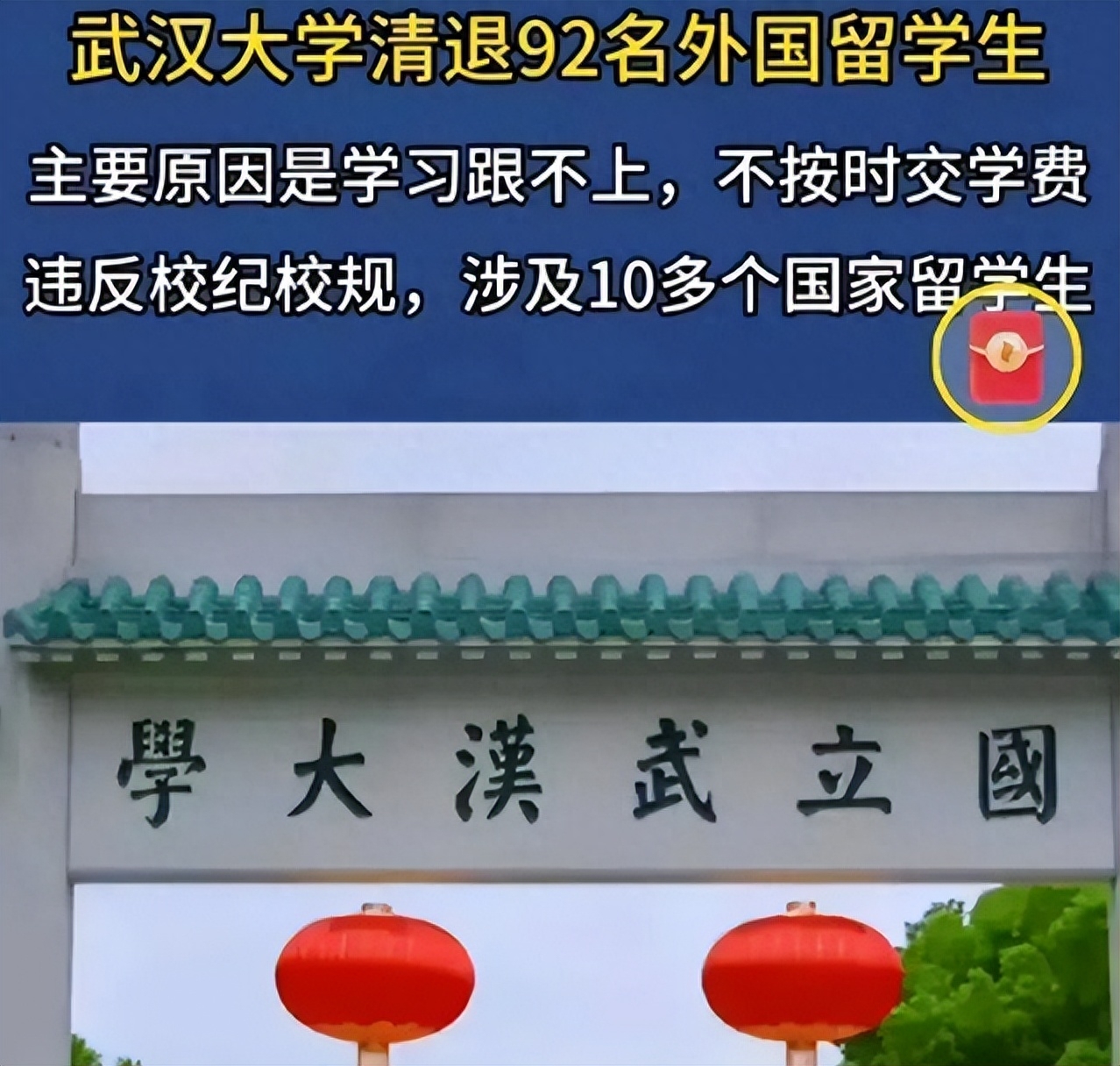 武汉大学也重磅出手,宣布开除92名外国留学生,涉及10多个国家,被称为国内第一所清退垃圾留学生的明牌高校。