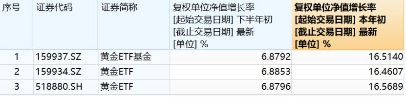 值得一提的是,虽然 9 月底经历了短暂回调,但三季度至今,黄金资产依旧有较为不错的收益,黄金 ETF 也延续向上态势,上述三只 ETF 在 6 月份以来净值回报均接近 7%。