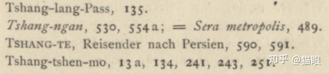 该书附录中李希霍芬明确地标注:Tshang-ngan =Sera metropolis .