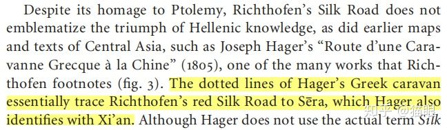 》中的内容对丝路进行阐述,他本人并没有以《航海记》内容作为丝路路线内容,也并没有以《航海记》中提到的地名“Thina”作为丝路起点,李希霍芬更没有对这一词具体指什么地方给出自己的观点。某些知友自己武断地认定李希霍芬引用了《航海记》就代表李氏以其中“Thina”作为丝路起点,这在逻辑上是根本讲不通的,他们更坚信一位中山大学学者对法国学者