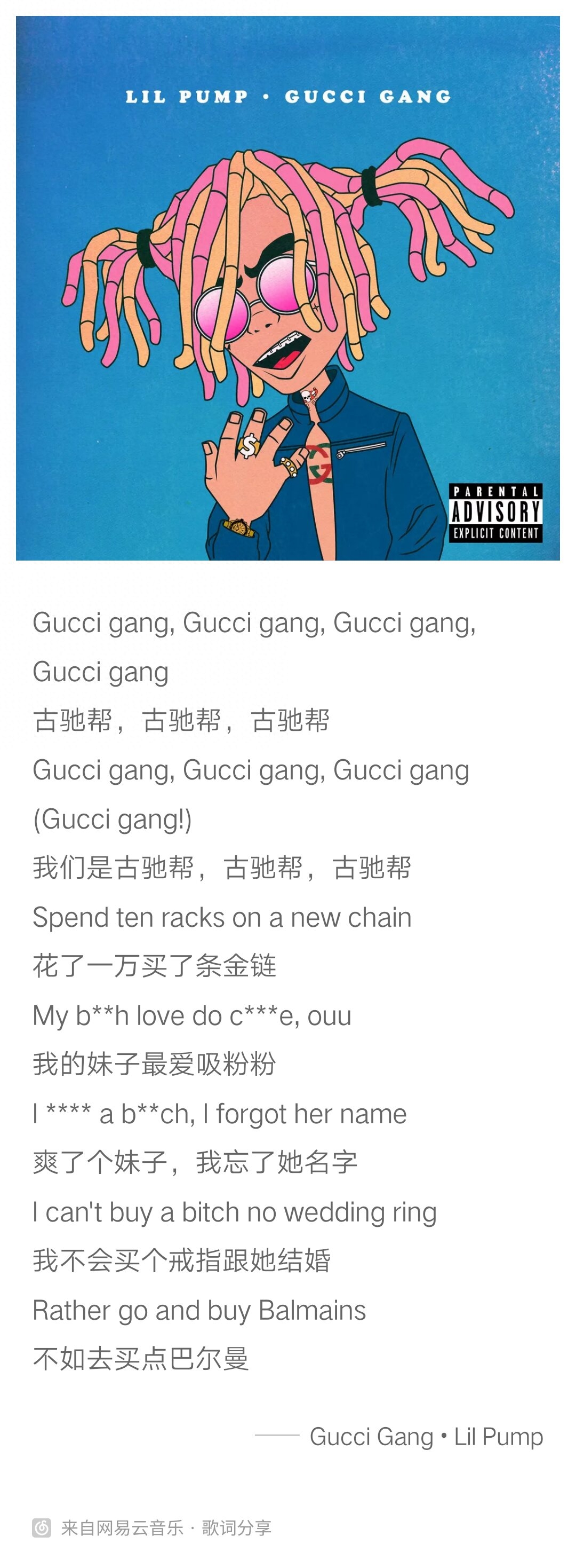 给大家看看争破头的《gucci gang》,水平真是一言难尽,人类本质真是复读机。
