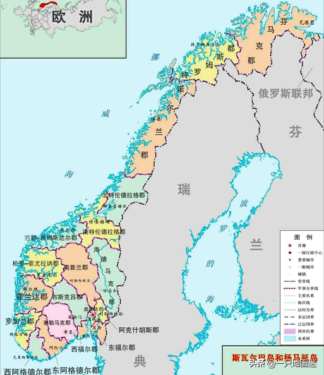 斯堪迪纳维亚半岛位于欧洲大陆最北部,半岛上有三个国家,挪威、瑞典和芬兰一角。半岛最西侧的挪威王国面积38.5万平方公里,国土非常狭长,南北距离长达1750公里,而东西最宽处约340公里,最窄的地方仅有5公里。挪威西部濒临北大西洋,有众多的峡湾深入内陆,有的甚至远达几百公里。