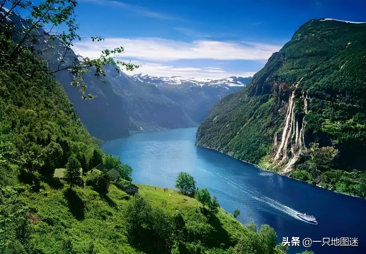 挪威千余条峡湾各具特色,各有不同之美。盖朗厄尔峡湾美丽而神秘,尽管全长仅有16 公里,但两岸耸立着海拔 1500 米以上的群山,突兀险要,如刀劈斧斫一般,峡湾以瀑布众多而著称,诸多的瀑布从悬崖峭壁上飞流而下,形成令人震撼的壮观景象。众多瀑布中,以“七姊妹瀑布”最为著名:刀剁斧劈般的千米绝壁之下,一道道强劲的水流将群峰劈开,从冰雪覆盖的山巅飞身而下,如银河落下九天,汇入峡湾中蔚蓝的海水里。
