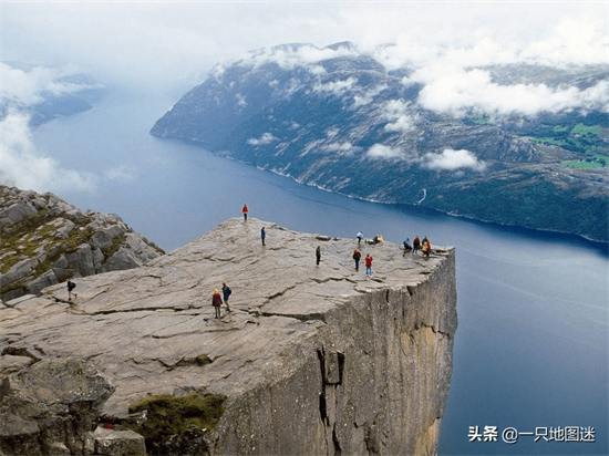 吕瑟峡湾虽然不长,但沿途惊险突兀,有很多的奇峰怪石,最出名之处当属那著名的“布道石”,布道岩距离水面604米,笔直耸立,顶部是一个近乎方形的平台。这里是观看吕瑟峡湾绝佳的角度。曾入选“全球50大最壮丽的自然景观”的首位,每年有近十万人登上崖顶,登上布道石需要三个多小时的时间,没有路,只能沿着乱石登上山顶。当你登上岩顶,一切都是值得的,站在布道石上俯瞰壮美的峡湾景色,不得不赞叹大自然的鬼斧神工。
