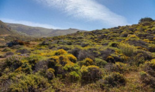 加州有一种当地的植物叫查帕拉尔,是一种灌木,常绿的阔叶的灌木比较矮,这个灌木的叶子里有蜡、有油脂、有脂肪,就是非常可燃的。它的叶子掉了以后,就掉在土壤里面了,就分解,这个油脂就在土壤里面呆着,所以说非常容易燃烧,积累到一定时候它就要烧起来了。
