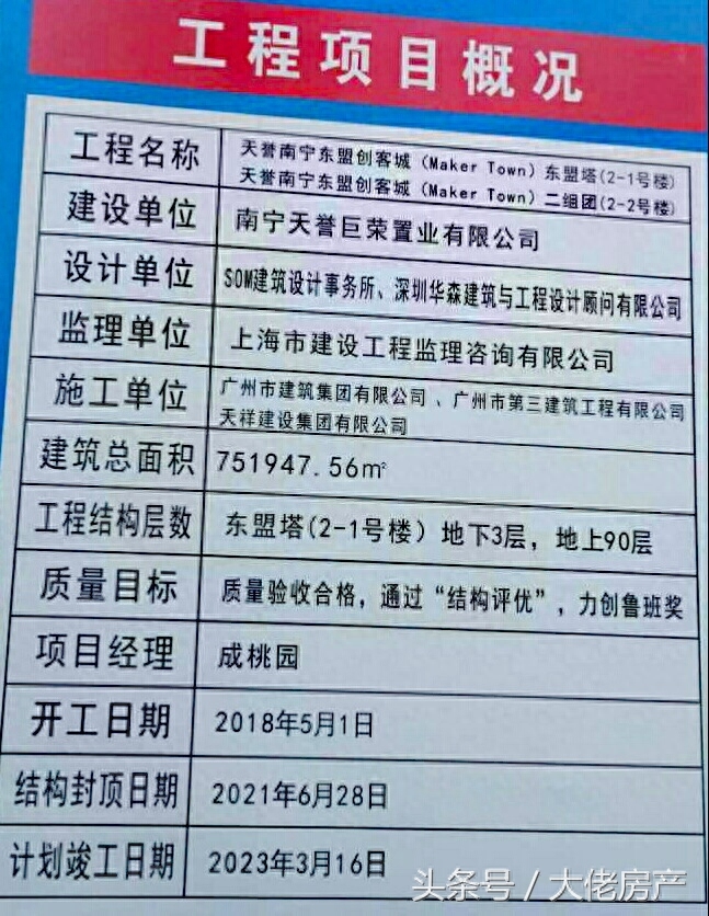 那么,问题来了?根据最新的现场施工工程介绍情况来看,南宁天誉东盟塔地上层数为90层,比之前的地上108层减少了18层,建筑高度未注明。这段时间闹得沸沸扬扬的南宁第一高楼528米天誉东盟塔其建筑高度被减到420米难道是真的?项目计划的的结构封顶时间为2012年6月,竣工时间为2023年3月,这栋南宁第一标志性高楼能否按时完工呢?我们还是拭目以待吧。