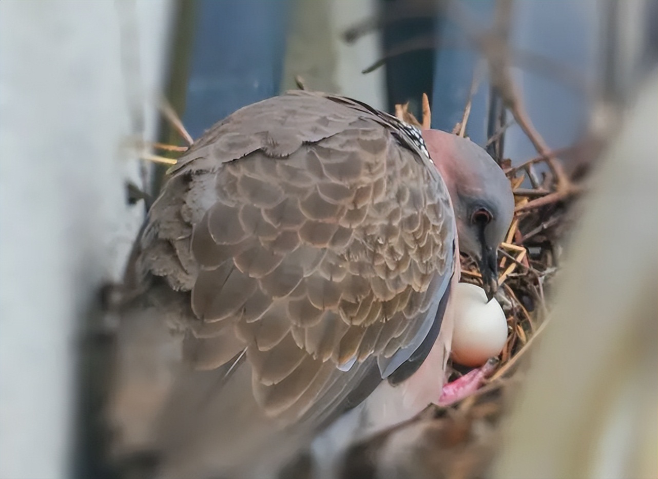 斑鸠不是不筑巢,只会在特殊期间才会筑巢,例如,繁衍后代的时候,斑鸠周期时间长,一般六个月才会成熟,10个月进入繁殖期,产卵时间为5-7月,只有短短三个月,一年最多下八次蛋,一次少则2个,多为10个。而斑鸠蛋,孵化周期约18天,一般由雄雌交替喂养。男女交配,干活不累。在这里也体现的淋漓尽致。
