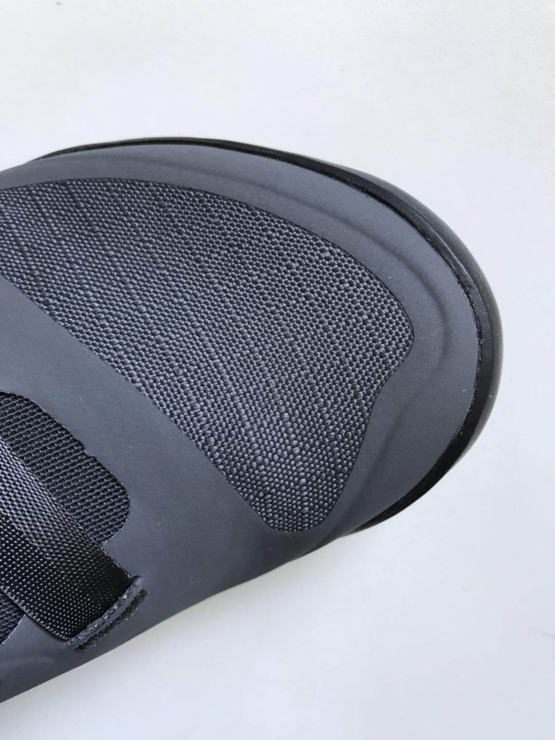 鞋面的防水性拿自来水试过了,类似于冲锋衣的那种效果,滴水不沾鞋. 不知道是不是GTX面料,应该是GTX吧.鞋头是一体式防滑橡胶设计,硬度够,也能抗外力保护脚尖.