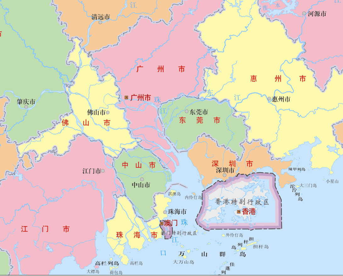 从上图可以看出,梧州市距离广州市非常近。如果广东省与广西合并组建一个岭南省,梧州最有资格成为岭南省的省会城市。