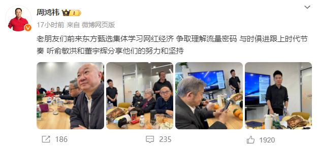 1 月 10 日,周鸿祎又和冯仑去了东方甄选,与俞敏洪和董宇辉学习网红经济。