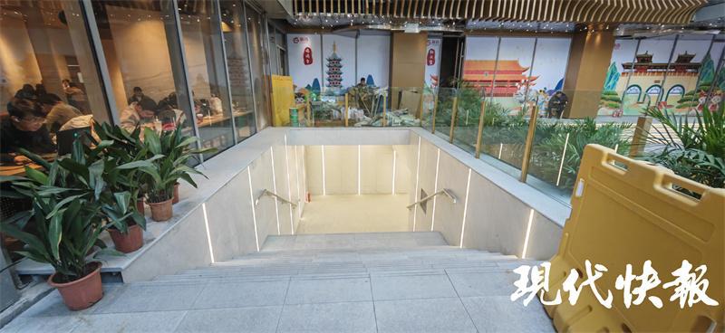 近日,现代快报记者来到南京新百 A 座一层的消防通道处,外围围栏上贴有施工提示的标语,走进通道内,现场施工正在有条不紊地进行,工人正在安装顶棚。据了解,改造前,这里通常为商场内各店铺运送货物和垃圾的通道,车辆进出频繁。据工作人员介绍,此处更新于 2023 年 11 月份开始施工,项目进程已完成大半。