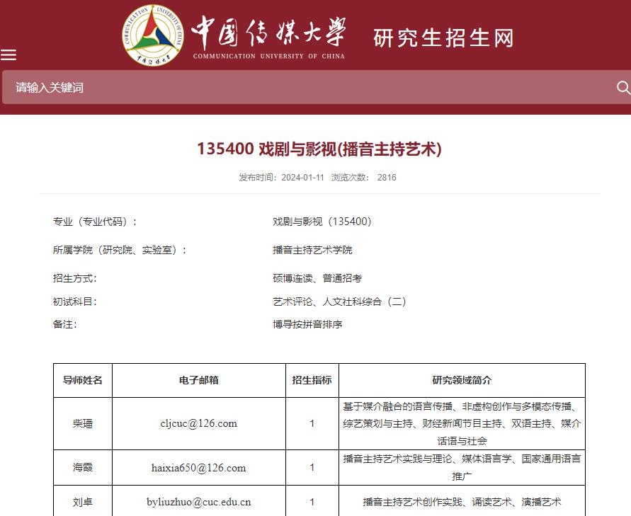 近日,在中国传媒大学发布的《2024 年第二批博士学位研究生招生专业目录》中,《新闻联播》主持人海霞以博士生导师的身份出现,研究领域为播音主持艺术实践与理论、媒体语言学、国家通用语言推广。