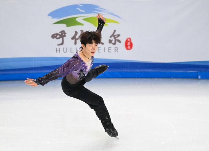 男子单人滑比赛中,北京队选手陈昱东以 212.98 分的总成绩夺得冠军。新华社记者 刘磊 摄