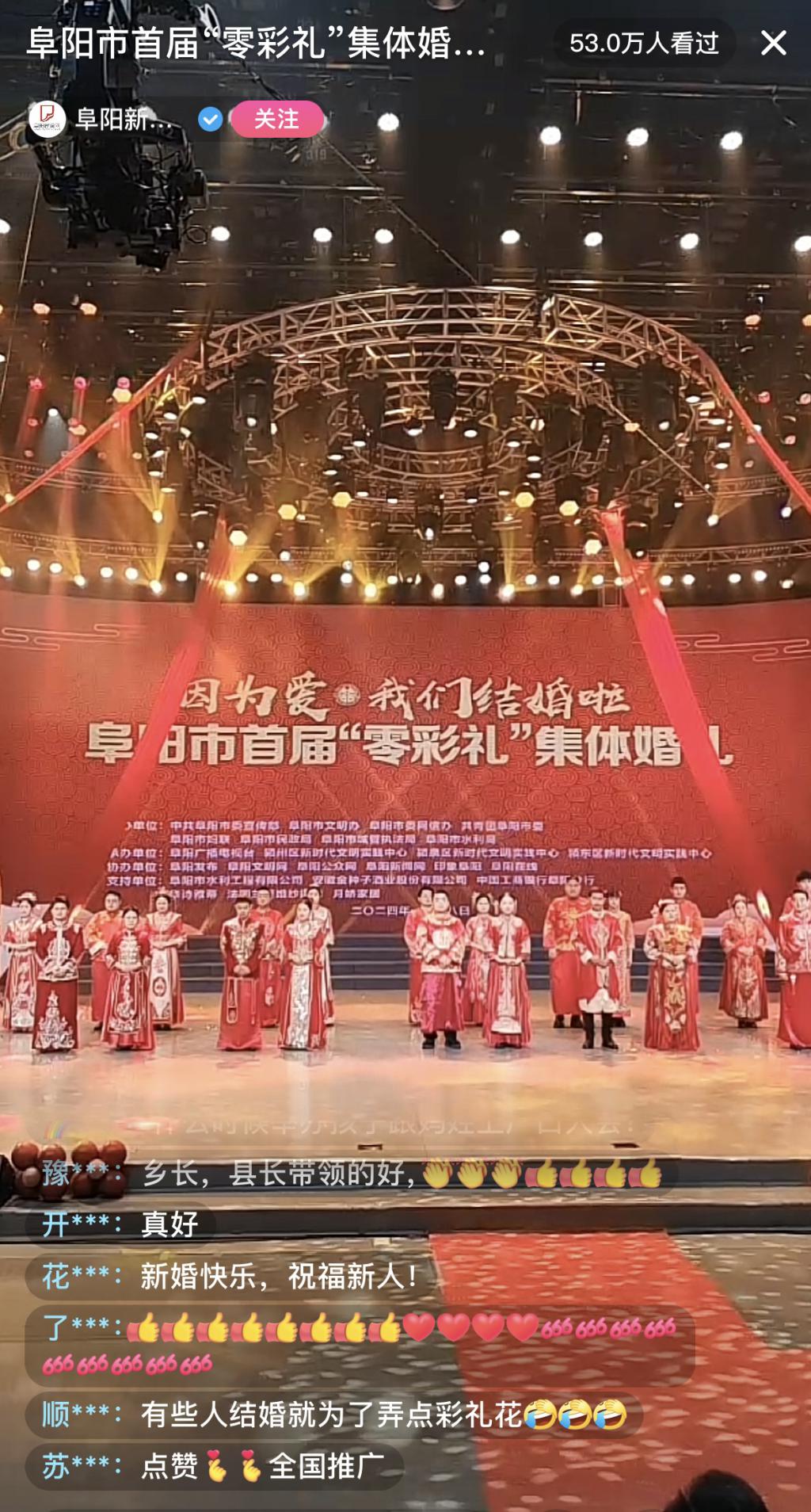 直播间超60万人次观看,一场“零彩礼”集体婚礼为何引来关注?