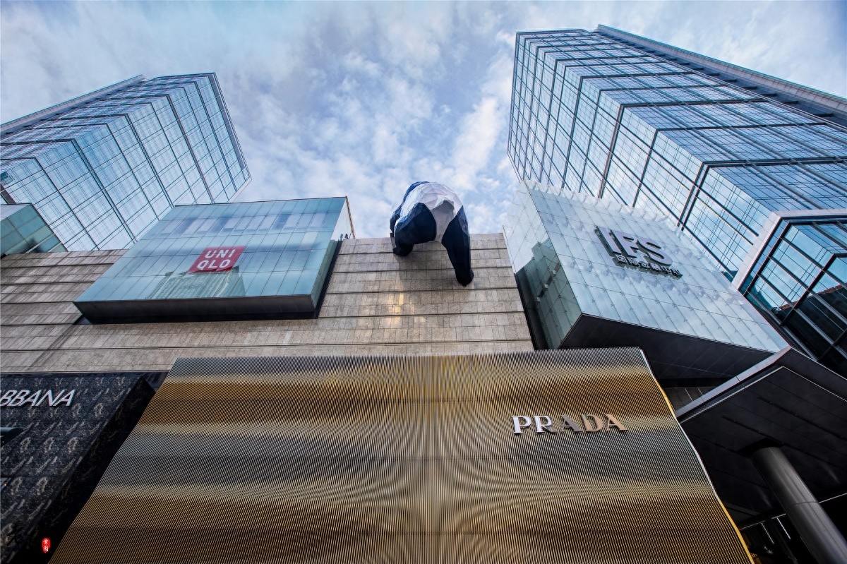 站在IFS门口,抬头仰望。你可以正好看到这只调皮熊猫的背影,它就像是一只刚刚睡醒的萌宠,在努力的爬到高点寻找乐趣。环绕在它身边的是成都IFS商圈最知名的国际品牌,比如奢侈品prada,平民品牌优衣库等。在成都逛街,你会经常听到这样的碰头语。“你到哪点了嘛?”“我在熊猫屁股下面的!”这是成都独有的碰头交流。熊猫屁股,这俨然成为了成都最知名的打卡点。只要你这么说,对方立刻知道你的坐标位置,这就是成都独有的节奏。
