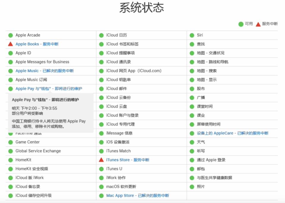 苹果公司系统状态报告今天发布更新,表示 1 月 27 日上午 7 点 29 分开始,App Store、Mac App Store、Apple Music 以及设备上的 AppleCare 服务出现中断情况。