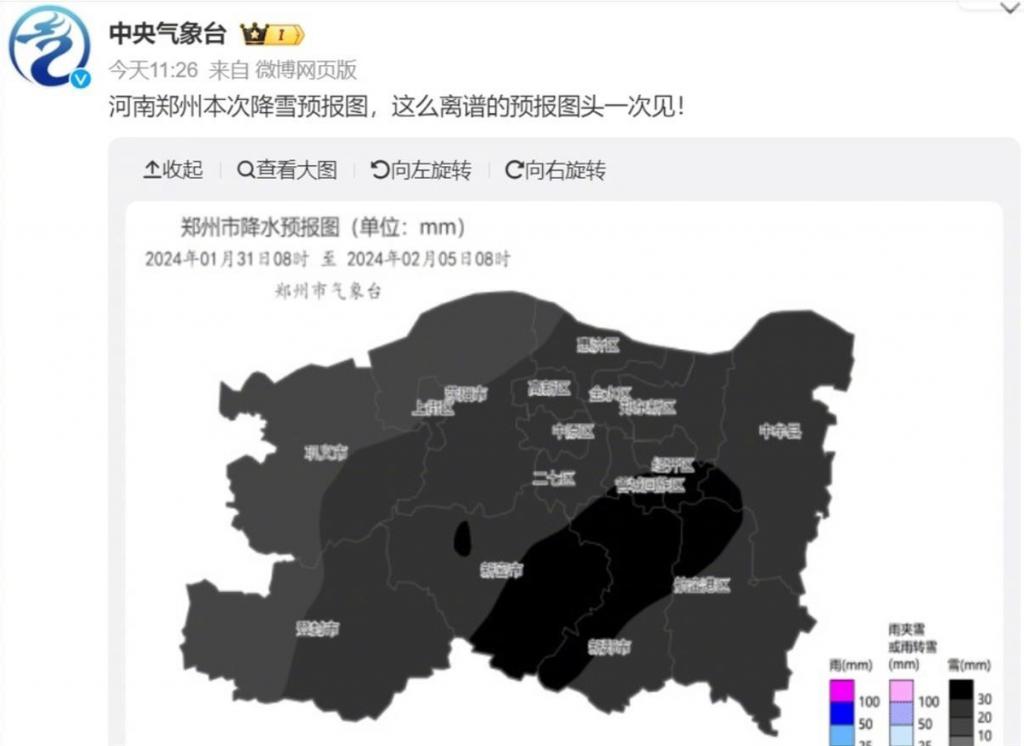 @中央气象台 看着河南郑州的降雪预报图,都忍不住直呼:头一次见这么离谱的!