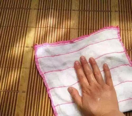 然后,大家准备温水,在清水中加点料!这些料就是适量的小苏打和适量的白醋啦,然后再加入一点花露水。我们都知道小苏打的清洁性非常强,白醋就有软化污迹杀菌消毒的作用,这两种混合加起来的溶液擦拭凉席的效果真的是太好了!具体做法就是将上面的溶液搅拌后用毛巾弄湿,沿着凉席的纹路擦拭表面的污渍,凉席上残留的污渍很简单就被清理干净啦,清洁过后的凉席变得跟新买的一样!花露水本身就有香味,在溶液里面加入花露水就可以除去凉席臭臭的霉味啦!