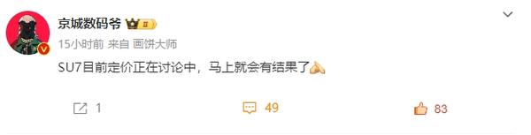 曝小米SU7的定价正在讨论中 马上就会有结果 22万起?