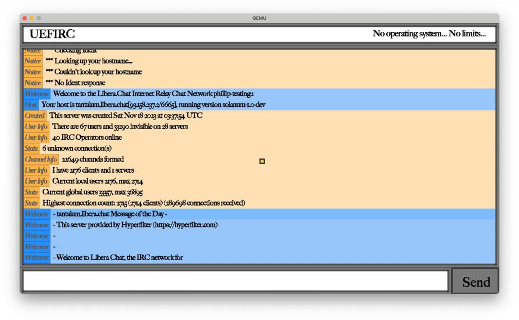 无需加载进入系统,开发者构建完全在 UEFI 上运行的 IRC 聊天室