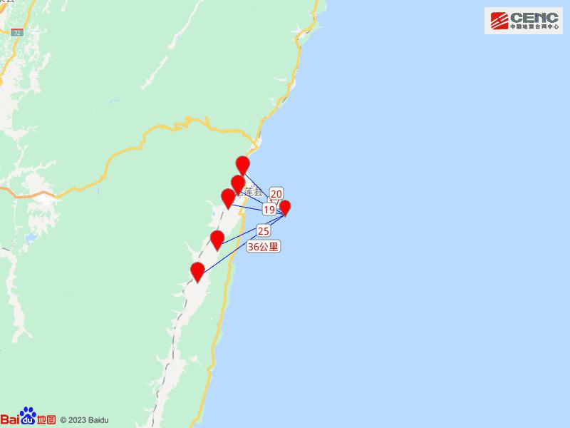 台湾花莲县海域发生4.6级地震,震源深度23公里