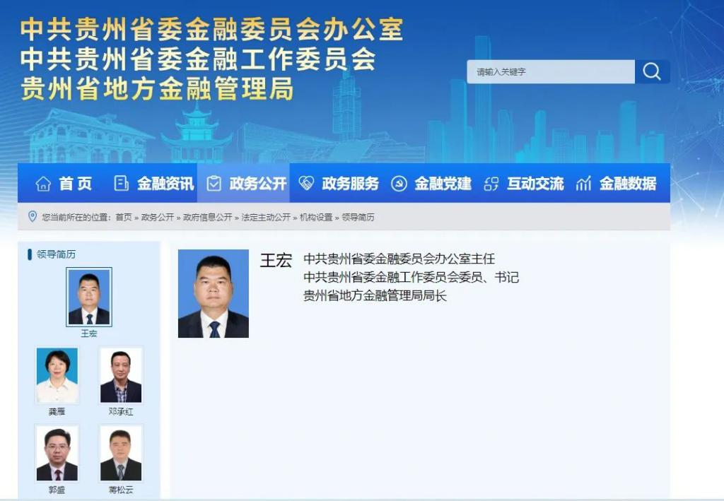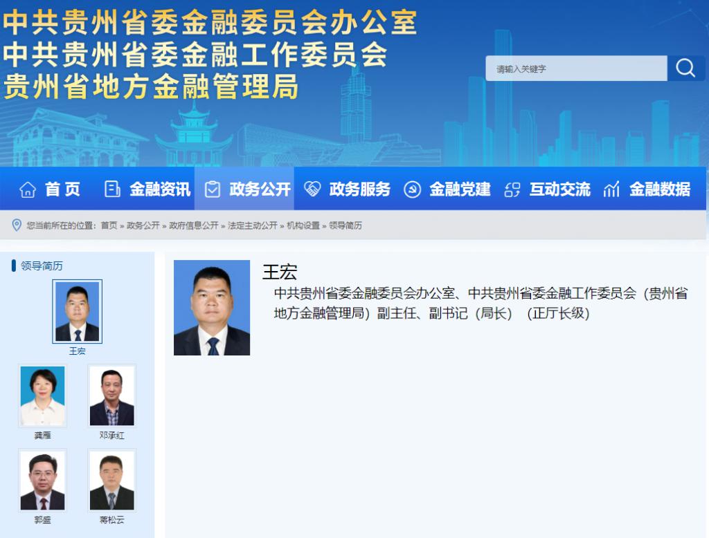 调整前,贵州省地方金融管理局官网显示的王宏职位。