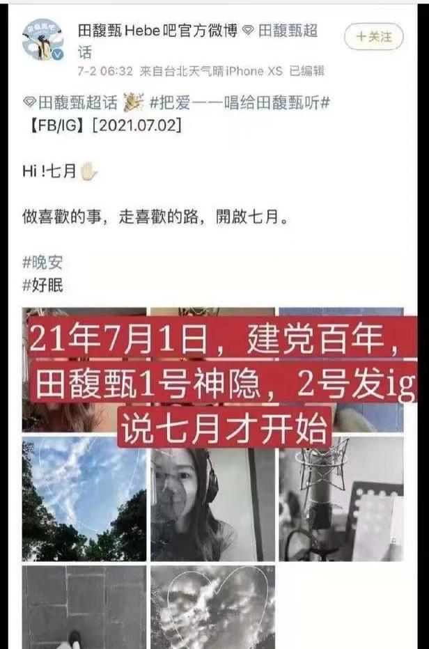 田馥甄在 7 月 1 日建党 100 周年那天神隐,并在 7 月 2 日发文称 7 月刚刚开始。