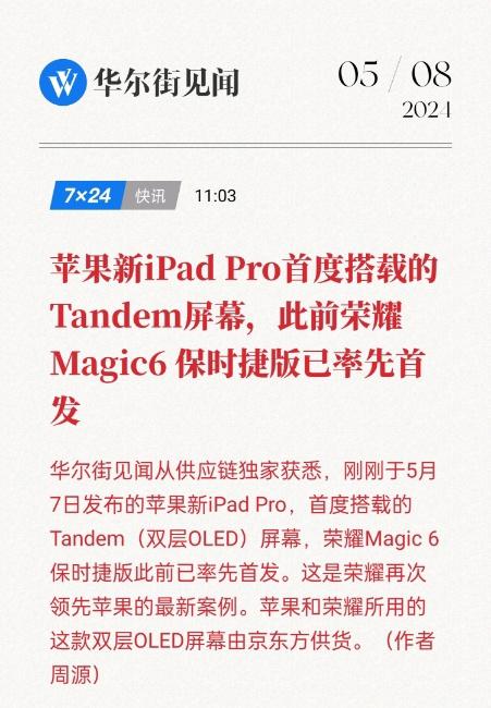 全新iPad双层OLED技术被抢先发布,荣耀 Magic6 保时捷版已首发
