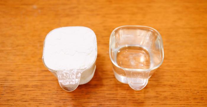 1、1杯豌豆淀粉,1杯凉水;其实这是大概的比例,你可以直接用秤来称重也行,重量也是一比一;这个1:1的比例是和面的比例,整个比例应该是1份豌豆粉配5、6份水。其中配5份水的话,口感会爽硬一些,配6份水会软滑一些,看个人喜欢吧。