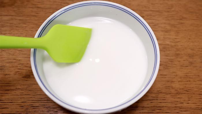 2、豌豆淀粉和1杯凉水同入大碗中,一开始淀粉会成块扒在碗底,轻轻搅拌,混合均匀备用。