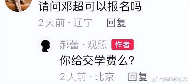 近日,演员郝蕾表演班收费标准曝光,不招收纯素人引热议。对此,有网友提问:" 请问邓超可以报名吗?" 郝蕾工作室回复称:" 你给交学费么?" 此话被质疑是郝蕾本人回复,有些不礼貌。